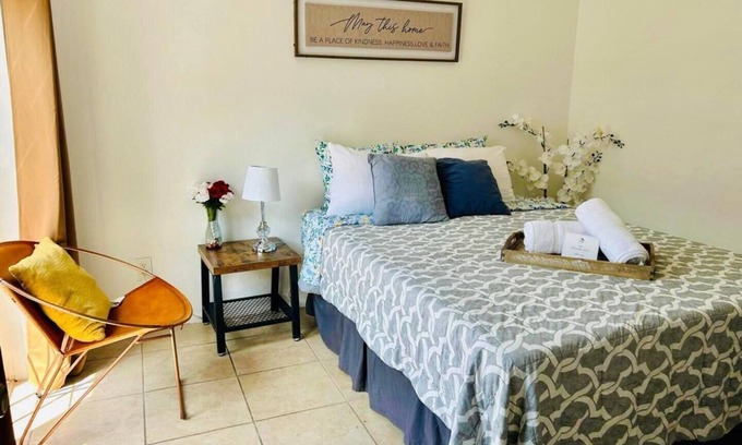 Recently remodeled with modern cozy touches. Completely independent Studio with private entrance to come and go as you please. Free private parking in driveway. Equipped with fridge, microwave, and coffee maker. smart TV! Our studio is within a centrally located residential neighborhood in the heart of tampa. An Uber ride away from all tourist attractions, famous restaurants and night life is just a couple blocks away. Safe to come and go at all hours. A 5 minute drive to the Airport, upscale shops of international Mall and most famous Restaurants in Tampa like Ocean Prime. Saint Pete Beach is a 20 minutes drive away! (Please let us know if you are heading to the beach we can lend you beach chairs and umbrella). 20 min away from Bush gardens. 10 min away downtown Tampa.