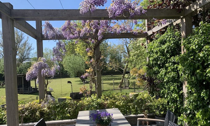 The Dutch Farmhouse features a cozy country kitchen equipped with modern conveniences, offering not just stunning views but also the chance to showcase your culinary skills. Enjoy your creations at the long dining table or be tempted by a meal on the adjacent terrace, surrounded by expansive views. The farmhouse is divided into two parts, and you'll be staying in the main residence.