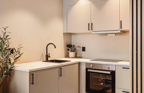 Dishwasher ⚬ Coffee maker ⚬ Toaster ⚬ Electric kettle ⚬ Wine glasses ⚬ Microwave ⚬ Dining table with 2 seats
