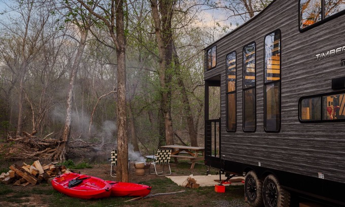*** New Listing Special (Camper Name – Avocado): Free Firewood Included!*** Our tiny house camper offers a unique stay just 90 minutes from DC. Experience life on the road with a touch of comfort—complete with a balcony and cozy lofts. Step outside to a charming creek with a peaceful beach and soak in the best of nature, all in a safe and serene setting. Nestled in a hidden, intimate campground, everything’s ready for your perfect getaway: a fire pit, picnic table, and even two kayaks!