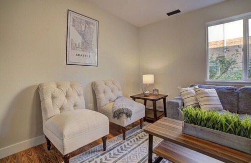 Cook a delicious meal in the spacious chef’s kitchen, cozy up in the downstairs living room for movie night in front of the large Smart TV, soak in the tub, or have a feast at the family-style table. This house is great for a group with easy access to Green Lake, nature walks, Golden Gardens Beach & Park, pubs, cafes, restaurants, shopping, and close to UW. It's only a short 12-minute drive to Downtown Seattle...or walk around the corner to catch the downtown bus.