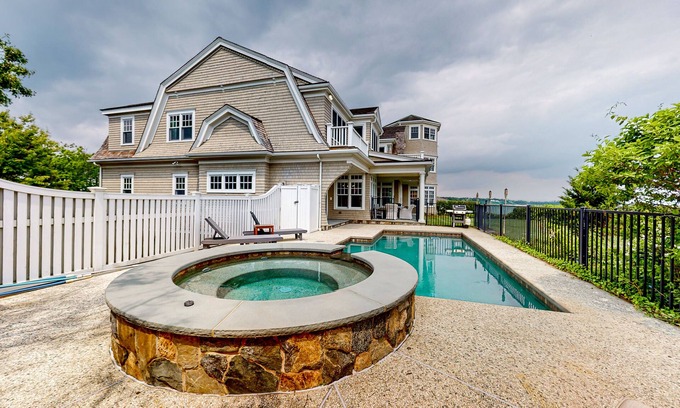 Escape the everyday and experience the extraordinary when you book this unique and spacious home overlooking the shores of the Atlantic, complete with a private beach. This estate boasts custom shingle style architecture with modern, immaculate landscaping showcasing the pristine saltwater pool and pool spa, outdoor dining set for brunch and cocktails, and the trail to the beach. This property is a paradise full of budding entertainment, boasting kayaks to take on the water and two adult bikes to ride into town. After a day of adventuring, come home to challenge your loved ones in the game room outfitted with three large TVs, a pool table, arcade-style Pac Man, a dart board, and a vintage stereo with an enormous LP collection. Of course, a kitchenette with a wet bar is provided for impromptu snacks.