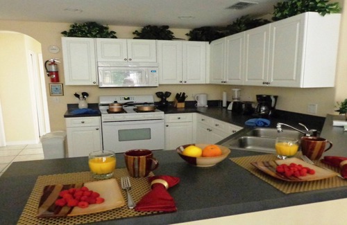You will love the villa’s open plan design with cozy and spacious family and living rooms, both with views of the pool area and direct access to the pool through patio doors. The rooms are beautifully decorated, with comfortable sofas. Two master bedrooms with en-suite bathrooms have direct access to the private pool and spa. The two twin bedrooms share a bathroom. The well-equipped kitchen opens into the living area with a formal dining room for special occasions, a breakfast nook and a bar. All rooms are air-conditioned and equipped with ceiling fans. All rooms are equipped with flat TVs (ROKU TV). There is a large flat 46" Smart TV in the living room and a 42" TV in the master bedroom.