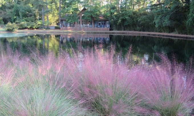 Are you in need of a temporary home? This fully-furnished contemporary house in Burlington is a perfect alternative to a long term hotel stay. Our ideal guests are companies/individuals working long term projects in the area; corporations needing housing for sales teams; management teams; executive relocations; owners displaced while building or waiting for a home. etc. It is located on 10 beautifully landscaped acres with a bamboo forest and two-acre pond, convenient to the I-85/I-40 corridor, restaurants, shopping, medical facilities and Elon University. The house shares the secluded bamboo forest and fishing pond with four other unique rental properties; this description is only for the Lodge at Longpine. The well-appointed kitchen features stainless steel appliances and a large granite island with 8 barstools. The great room with bamboo flooring has a large flat screen TV with high speed internet, a wood-burning fireplace. Two carpeted master bedrooms (one king, one queen) on either side of the great room/kitchen have dramatic double tray ceilings with concealed lighting and retractable blooming flower ceiling fans. The king bedroom’s bath features a tiled walk-in shower along with an ADA height Kohler toilet and double sinks, while the queen bedroom’s bath has double sinks and a jacuzzi tub/shower. A half bath off the great room is convenient for guests. All rooms open to the 1,500 sq. ft. deck overlooking the water, where you can kayak, or cast for bluegills and bass. The deck has a stone fireplace, charcoal grill and comfortable seating with lots of space for outdoor entertaining. A large carport off the kitchen comes in handy on rainy days. The seclusion of being located off the beaten path in a bamboo forest will add to your delightful stay. No smoking of any type inside the home. We look forward to sharing our beautiful home with you.