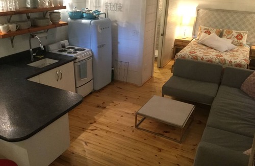 Are you in need of a temporary home? This fully-furnished contemporary house in Burlington is a perfect alternative to a long term hotel stay. Our ideal guests are companies/individuals working long term projects in the area; corporations needing housing for sales teams, management teams, executive relocations; owners displaced while building or waiting for a home etc. This cottage is a 500 sq ft. masterpiece built on the foundation of a former greenhouse. The exterior is constructed from all repurposed material including rusty tin, barn wood, reclaimed windows and heart of pine wood salvaged from a 150-year- old furniture factory. The interior is 100% modern and includes hardwood floors, ship lap siding, bead board ceiling, tile shower, granite countertops, and SMEG appliances. The ground floor includes the kitchen, den, sleeping quarters with queen size bed and full bath. The spacious loft has a king size bed and seating area with three 3’x6’ windows which provide a magnificent view of the surrounding bamboo forest, creating a very tranquil spot. The location is very private, giving the home an “out in the country” feel, yet it is right in the middle of everything. Convenient to the I-85/l-40 corridor, with shopping, grocery stores, restaurants, movie theaters, and a hospital less than 2 miles away. Elon University is 5 miles away. This one of a kind property must be seen to be believed. Well-behaved dog welcome. No smoking, no cats. Note that this property shares the 10 acre bamboo forest with four other rental houses on a two acre fishing pond.