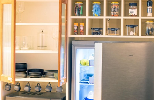 This is a self-contained apartment: we provide a generous starter pack; guests replenish as needed.