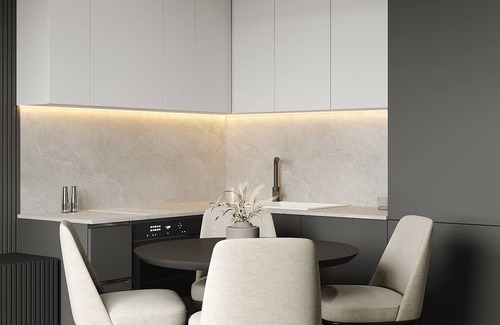 In the main bedroom, sink into a soft king-size bed dressed in hotel-quality linens and custom ergonomic pillows for truly restorative sleep. The second sleeping area features a single bed that transforms into a double, while the sofa bed in the living room offers additional comfort for guests or cozy afternoon naps. Every detail — textures, lighting, fabrics — is designed to make you feel embraced by comfort, any time of day or night.