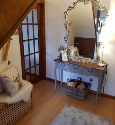 Food & DrinkTea/Coffee makerBathroomToilet paper, Hairdryer, Private bathroom, Shower, Toilet, Towels, Bathtub or showerMedia & TechnologySatellite channels, TV, Video games, Flat-screen TVGeneralHardwood or parquet floors, Iron, Private entrance, Ironing facilities, Smoke Alarm, Key card access, Heating, Trash cans, Key access, Fire extinguisher, SoundproofKitchenMicrowave, Kitchen, Electric kettle, Wine glasses, Stovetop, Cleaning products, Dining table, Refrigerator, Washing machine, Kitchenette, Kitchenware, Oven, ToasterLiving AreaFireplace, Dining area, Sitting area, SofaOutdoorsOutdoor dining area, Outdoor furniture, Patio, BarbecueViewQuiet street view, View, City view, Mountain view, Garden viewBedroomChildrens' cribs, Wardrobe or closet, LinensAccessibilityUpper floors accessible by stairs onlyBuilding CharacteristicsSemi-detachedRoom AmenitiesClothes rack, Hypoallergenic pillow, Non-feather pillow, Socket near the bedEntertainment & Family ServicesChild safety socket covers, Board games/puzzlesInternetGame console - PS4LayoutWindowCleanliness & disinfectionHand sanitizer |