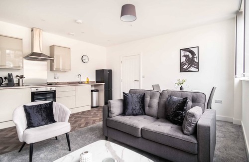 This stylish 1 bedroom apartment is perfectly situated in the heart of Wrexham. With a bright, open-plan layout and modern décor, it offers a welcoming and homely space for up to 2 guests. The apartment comes fully equipped with contemporary furnishings, essential amenities, free Wi-Fi, and complimentary toiletries and towels to get you started on your stay.