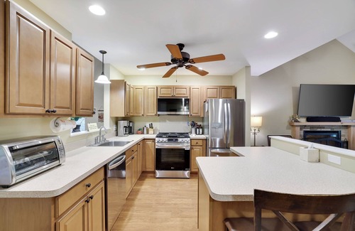 Walk into the spacious living room where the propane fireplace creates a warm and cozy atmosphere The kitchen is stocked with all of the necessary cooking tools to prepare a Feast and open to the living area—it makes it easy to stay connected while cooking. the large dining room is the perfect spot for memorable family dinners. A space where everyone can gather together for a meal that is truly special.