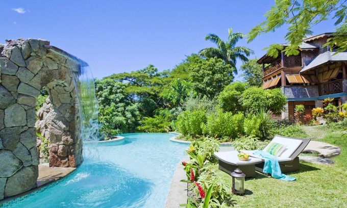 Designed in traditional Caribbean style with some Balinese influence, this luxury St Lucia Vacation rental offers a free-flowing layout allowing comfort and privacy amidst carefully landscaped tropical gardens, abundant with fruit, where often the only sound is birdsong or the lapping of waves on the nearby shore.