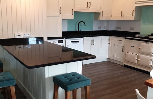 The house has been re-decorated and furnished to a high standard. There is a brand new kitchen, complete with electric Aga (not required for heating, instructions provided, very easy to use) Original features of the old stables have been retained, in the sympathetically restored master bedroom, including beams and names of the former equine residents! New family bathroom. New bath, shower & cabinet