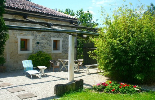 L'Ecurie is situated in the peaceful, ancient village of Migron, the heart of the Cognac/Pineau producing area, surrounded by acres of vineyards and sunflowers.