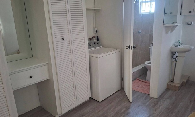 Fully fence detached studio apartment. located at Fair View Gaden behind the Coverly Development. The studio is great for 1-2 people. Very safe neighborhood, you can walk around anytime of the day and night without any hustle. The property has just been refurbished, and everything are brand new. It is next to bus route, and Massy supermarket, many restaurants, gym, doctor office etc. are just 5 minutes' walk over to Coverly Development..