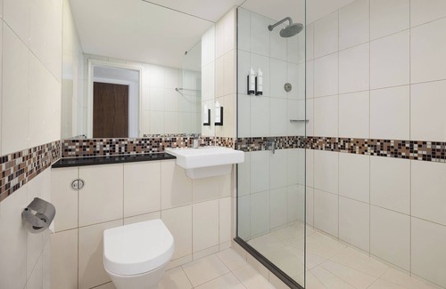 An outdoor pool, a children's pool, and a hot tub are on site. Other recreational amenities include a fitness center.