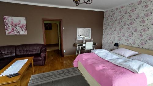 8.4 miles from Polanica Zdroj Train Station in Wambierzyce, Fajne Miejsce features accommodations with access to a hot tub. This property offers access to a terrace, darts, free private parking, and free Wifi. The apartment provides an outdoor fireplace and a 24-hour front desk. The spacious apartment includes 2 bedrooms, a fully equipped kitchen with a dishwasher and a toaster, as well as a coffee machine. Towels and bed linen are provided in the apartment. The property has an outdoor dining area. Guests can make the most of the warm weather with the property's barbecue facilities. For guests with children, the apartment offers outdoor play equipment. If you like to discover the area, skiing, cycling and hiking are possible in the surroundings and Fajne Miejsce can arrange a bicycle rental service. Kudowa Zdrój Train Station is 20 miles from the accommodation, while Errant Rocks is 21 miles away. Copernicus Wrocław Airport is 62 miles from the property.