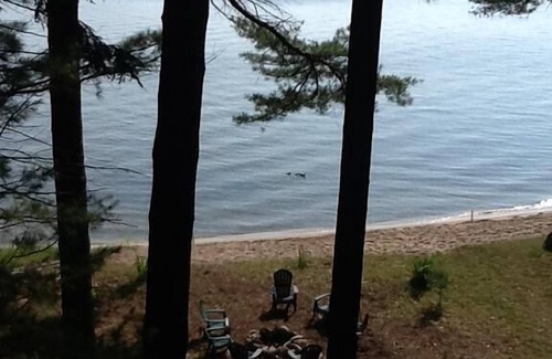 'Falconhurst' was the name the Swiss Family Robinson gave to their home in the trees . . . an overlook that served as a home base for adventures. Our cottage is on a bluff amongst the shade on the west shore of Hamlin Lake. Below the bluff is one of the few true beaches on the lake, where the shallow water, unencumbered by a breakwater, gently gets deeper over a long distance at a gradual pace. If you like to frolic and play in the water (or learn to swim), this is the place! 4 kayaks and 2 SUP's are on the semi-private beach for further adventures, Behind the cottage, just west, is one of the highest sand dunes in the region of the Nordhouse Dunes and Ludington State Park. Kids of all ages LOVE the run down - and differ on the climb up! ;-)