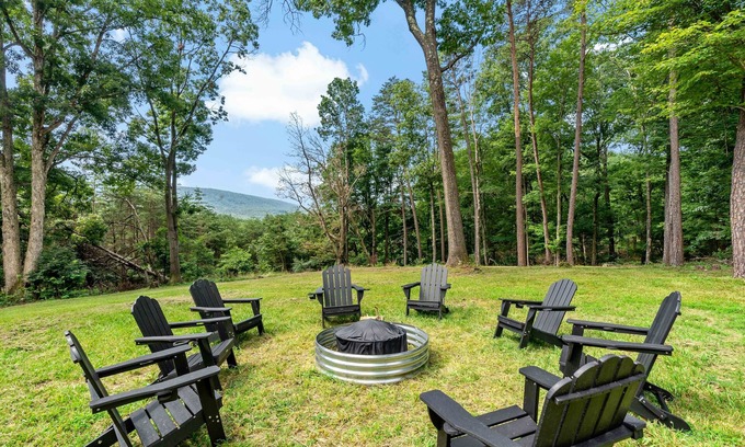 Family/group-friendly vacation rental • 3 private acres • Sauna • Hot tub • Fire pit • Mountain views • 2 king suites + 4-bed bunk room • Fast WiFi • No pets