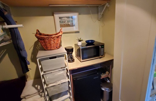Basement Studio is not accessible by guests and is the Owner's private space. It is isolated acoustically and has a separate entrance from the back patio, from the main house, living space. The owner does not access the rental space unless there is an emergency or if requested by the guest for assistance. Cats on the property are not allowed in the main house, please.