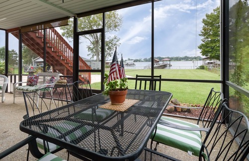 Perfect for large groups and families! 3 story home with an exceptional 100 feet of lake frontage. 6 bedrooms, 5 bathrooms, sleeps 14. 4,613 SqFt. Screened porches, oversized garage, and large lot. Recreational room with ping pong table, 2 kitchens, 2 master suites, 2 living areas, and dining area.