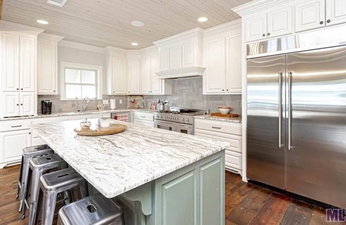 As you walk through the doors of False Riviera, you are pulled in to its expansive kitchen and living area. Private pier, screened in porch, and furnishings are just a few features that make this home one of a kind. Sleeps 8 comfortably!This 3 bedroom, 3 full bathroom home boasts quartzite counters in kitchen, commercial grade stainless appliances, heart of pine floors, custom cabinets, barn door pantry, wet bar with wine cooler & ice maker, cypress beams, high end fixtures and custom blinds.