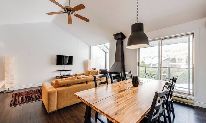 The Familiale is a row house located in a peaceful area 1 minute from Mont-Sainte-Anne. A perfect spot to spend time with friends and family. Fully equipped and welcoming, complemented by a beautiful fireplace in the main living room.