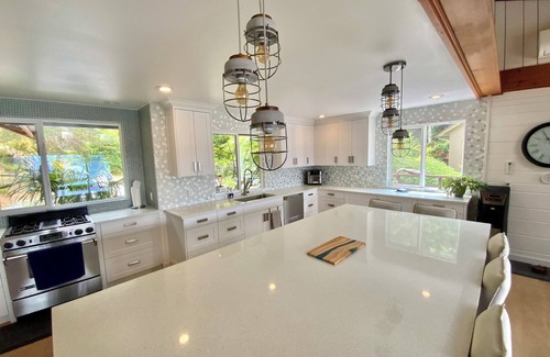 Enjoy the three bedrooms and three and a half baths as well as our fully stocked kitchen with its over-sized island!