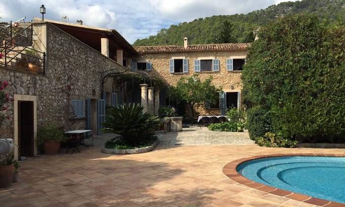"S'Estorell" is a 1905 built town house in the heart of Alaró, which due to its ca has 4th 000 m2 large garden Finca Charkter. The house was completely redeveloped. All rooms and bathrooms have been lovingly and comfortably furnished in Majorcan style. In the garden there are six different types of fruit, including an ever-fruit-bearing lemon tree in the courtyard dichtbepflanzten. The 80 m2 large and up to 3m deep pool perfect for swimming. And if you do not feel like cooking or grilling on the patio, then located in a walking distance of a few minutes several restaurants. The nearest bakery for a delicious breakfast, for. Example, in partial shade under the sun deck by the pool is located about 200 meters up the road. The large dining table in the courtyard and the second large dining table on the covered terrace on the top floor with a fantastic view of the gates of heaven in the mountains invite for social gathering. The house is suitable for cyclists größerere groups and hikers who can start their tours directly on your doorstep.