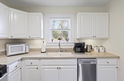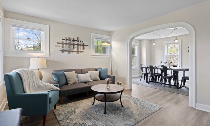 You will have this entire three-bedroom home to yourself, with off-street parking in the driveway. The kitchen is fully equipped with refrigerator, stove, oven, dishwasher, coffee maker, microwave, toaster, blender, slow cooker, and all pots/pans, dishes, etc. required for full meal preparation. If you find we are missing something, just ask! and we can provide it right away, within reason. You will be able to check in on your own with a keypad, so you can come and go according to what works with your schedule. There is one bedroom on the main level with a queen-sized bed and a desk if you need to work. Two bedrooms are upstairs - one with a king bed and futon and one with a full-sized bed with a twin-sized trundle. Also available for sleeping are an inflatable queen mattress, a queen-sized sofa bed in the living room, and we provide a pack-n-play (with mattress) for your baby/toddler.