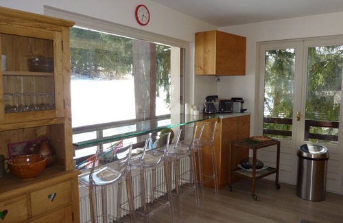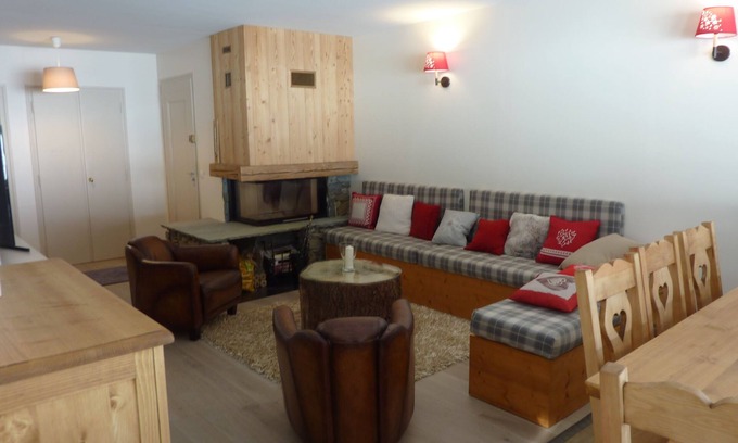 District of Rochebrune. Completely renovated, this family apartment with an area of 90 m² and can accommodate 10 people. Located on the second floor of a luxury lodge, it has a long balcony, overlooking Mont Blanc and its sunset. it is not vis-à-vis, overlooking the nature and trees. 3 bedrooms and three bathrooms and an extra room on the ground floor. A large living room with fireplace. A garage. A bus stop (in front of the residence) lifts of Rochebrune. Possibility to return to ski to the apartment