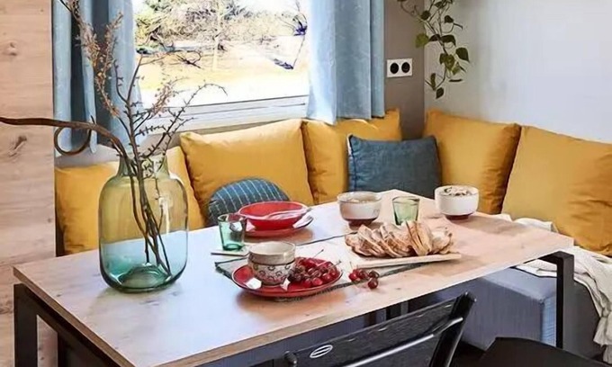 Details: Wi-Fi access : Various packages for sale at reception - See rates on site Playground for children : 2 playgrounds Family animations : one musical evening per week in season Pets allowed : 5€/night /dog. 1st and 2nd category dogs are prohibited Barbecue : gas/coal/wood – above ground (not electrical) Deposit (in supplement) : 200 Baby chair : 3€ / night Lake / river distance : 20 m Final cleaning fee : optional: 85€ / 105€ for XL accommodation and/or with 2 bathrooms - on-site payment Baby Kit : 3€ / day baby chair + 3€ / day baby bed Laundromat : washing machine (5 €) and dryer (4 €) Bedding : double or single sheets : 15€ Towels : 8€/kit (1 large + 1 small) to be set on site Crib : 3€ / night Number of stars : 3 Water park : 200m2 heated with bubble bath, paddling pool and water for children Sin : yes bowling Ping Pong : yes Swimming pool : outdoor heated - partly covered from the opening of the campsite Near airport : Lyon Saint-Exupéry Airport #LYS (117.3 km), Geneva Cointrin International Airport #GVA (60.0 km) Fitness room : outdoors Breakfast service : Bread deposit every morning (on reservation) - July/August only Tourist tax (surcharge) : 0.65€ / night / person (free for 18 years) Multisports ground : yes Tennis Sports animations Air conditioner Number of bedrooms : 3 Surface (m²) : 31 Television Pets Allowed : With supplement - Tenus on leash Cooked Microwave oven Number of bathroom : 1 Number of toilets : 1 Terrace Barbecue