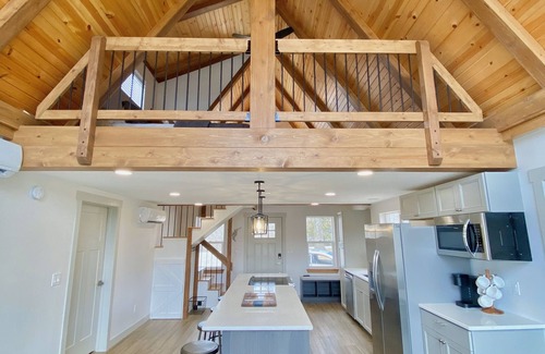 Discover a treehouse, a fishing pond, and endless adventures at our Little Blue Cabin. Located in the Ozarks, just minutes from Branson and Silver Dollar City, this cabin offers a pristine stay with everything new. It accommodates six guests with a full kitchen, bedroom, loft, and bathroom. Explore the surrounding natural beauty on a mile-long wooded trail or let the kids run and play on acres of grassy, rolling hills. After exploring, relax on the loft net. Let your serene getaway begin!