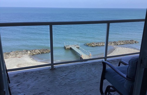 Step into this stunning main-level condo, where breathtaking panoramic views of Lake Erie await right from your private balcony. Enjoy your morning coffee or an evening glass of wine on your private balcony,
