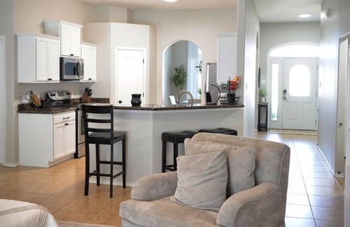 Well equipped with pots, pans, utensils, kitchenware, and some basic spices/herbs. There is also a toaster, George Foreman, molcajete, chopper, blender, hand mixer, standard drip coffee pot, popcorn maker, French Press, water kettle, and a coffee grinder. And, if you're planning a family get-together, we have a few items for those special moments. Like a cheeseboard, serving dishes, an ice bucket, an ice chest, and a glass cake holder, to name just a few items. Please be sure to dig through our pantry and dining room cabinets. You never know what might be in there that might make your trip a little more comfortable. We also have an adult-size square folding table, four adult-size metal folding chairs, one kid-size square folding table, four kid-size metal folding chairs, and four camping chairs if you need more space for dining.