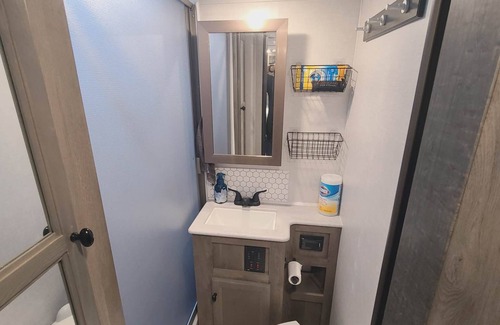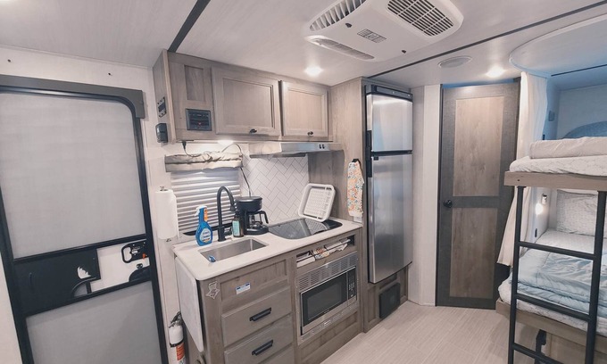 The RV is parked right next-door to the owners, who are available should you have any problems. Coffee, bottled water & a welcome snack basket included!