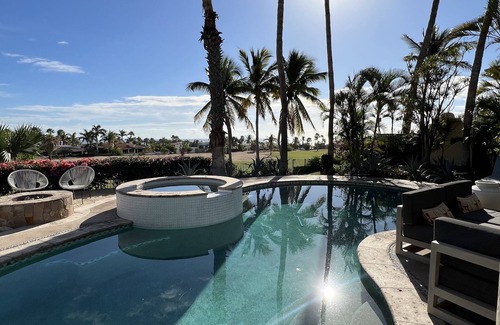 Enjoy a memorable Cabo vacation at this captivating 3-bedroom expansive rancher in Palmilla. This stunning property features 3 king beds and 1 twin bed, ensuring a comfortable and relaxing stay for guests. Immerse yourself in the serene private surroundings of a Jack Nicholas golf course and blue ocean views. Wake up to the sunrise while sipping your morning coffee in ultimate luxury and privacy, and finish your day sipping wine and BBQing your favorite steak in total seclusion. Take advantage of amenities for your guests such as a swimming pool/hottub, Viking BBQ and appliances, fully stocked kitchen/bathrooms, and a trampoline if your traveling with children. Guests will surely enjoy the walkability to The Shoppes of Palmilla, various dining options, the Friday farmers market, bars, cafes, groceries and the dreamy swimmable ocean of Palmilla .