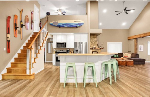 This home features 3 full main floor bedrooms all with Queen sized beds, deluxe mattresses and luxury linens. There is an additional second floor loft that we have named the "Kids Cave" that features two pull out couches and equipped with all the supplies you would love to come home to after a fun day out in the sun, shopping or exploring the wine region!