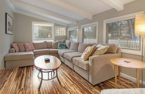 Escape to the shores of Lake Michigan in this beautiful family home. Sporting a mid-century architectural design, this sun-filled getaway boasts year-round entertainment and convenient access to nearby area attractions. Just a short drive to restaurants, shopping, and harbor in quaint, downtown New Buffalo, you'll also be a short walk from beach access and golf. Cruise in comfort with the provided golf cart and visit all these great attractions.Plus, Chicago is an easy day trip away. In-home features include an enclosed yard with a grill, firepit, bikes, ping-pong and foosball, and an indoor hot tub.