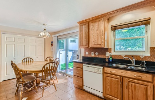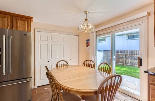 Huge yard with a grill and outdoor seating for outdoor activities with access to a community pool and park right across the street. This home features a fully equipped kitchen with a coffee bar and a dedicated work space. Kid-friendly with an air hockey table and plenty of board games for family fun.