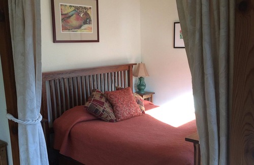 Located at 85 Nichols St. in Friday Harbor. Our bigger of 2 units, suite #1, one is spacious and comfortable, 850 Sq. Ft of in town lodging .Full kitchen, bath, outside deck with barbecue. Family friendly, sleeps up to 6 with a queen size semi-private bedroom with adjoining double bedroom, foldout double futon and large window seats create a very cozy space. Heavy cloth curtains seperate bedrooms, no door to bedroom. Cable TV, WiFi and Antique & contemporary furnishings and local artwork give Nichols Street Suites a feeling of home...Check it Out... We're within walking distance to all of downtown, waterfront and local amenities...Off street parking available. Nichols Street Suites is a Non Smoking Facility. Thanks for your inquiry...Summer Rates apply May 15 to Oct. 15. Winter rates, Oct. 15 to May 15