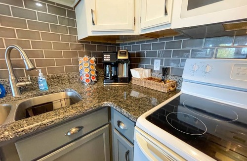 Our kitchen has lots of counter space and is fully equipped with pots, pans, dishes, glassware, silverware, and utensils. We also provide cooking essentials such as oil, salt, and pepper.