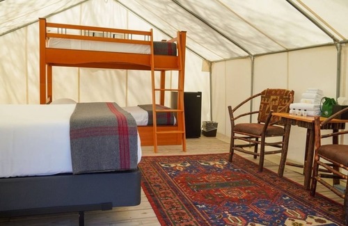 This 300 sq ft Family Glamping Tent Queen with Twin Twin Bunk features: