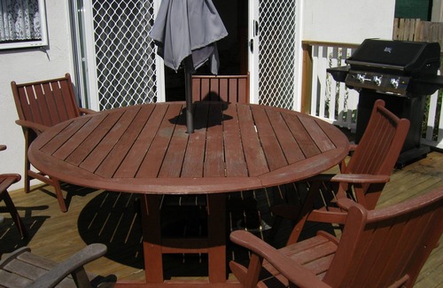 In the mood for dining under the stars? The large BBQ deck has its own wooden round table and chairs for a rustic, dining experience.