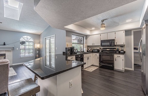 The space comprises of living room, dining area, full kitchen, family room, 3 bedrooms and 2 bathrooms. The home has AC and heating. The kitchen has everything you will need for a comfortable stay. The living area and family room both have smart TV's with Netflix and the wifi is free.