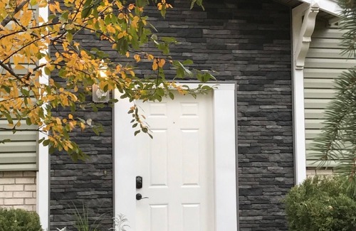 I have a key-less, coded entry pad. There are two steps to the front door, then the unit is down 4 stairs behind the door with the Welcome sign! And please come and go as you like! I have outdoor sensor lights and I keep the hall lights on at night. There is plenty of parking on the wide tree-lined street in front of my house. Please do not cut across the front lawn but use the driveway and sidewalks to come and go!