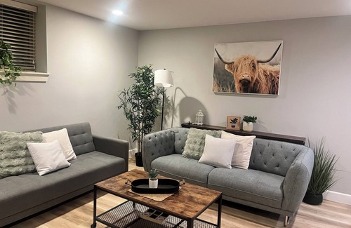 Welcome to our cozy one-bedroom basement suite, perfect for families. Nestled in a quiet neighborhood, our space offers all the comforts of home close to all amenities. The bedroom features a queen-sized bed and a tv, while the futon in the living room provides additional sleeping space for kids. Explore the neighborhood, where you'll find parks, playgrounds and restaurants just a short walk away. Whether your here for a short or long stay we look forward to hosting you!