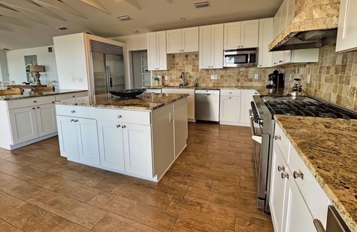 Whether you are crafting a snack or a seven course meal--the spacious kitchen is sure to inspire many a night of home-cooked meals should you so choose. Fully appointed with granite counter-tops and a convenient center island, this state-of-the-art kitchen boasts a famed Thermador gas range and Jenn-Air refrigerator.