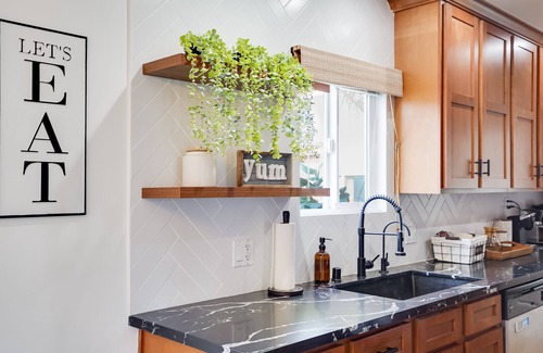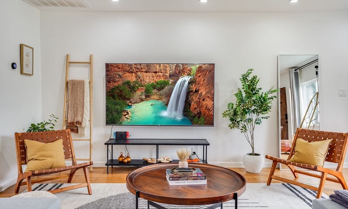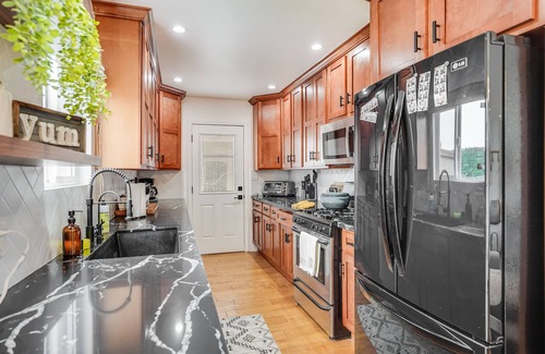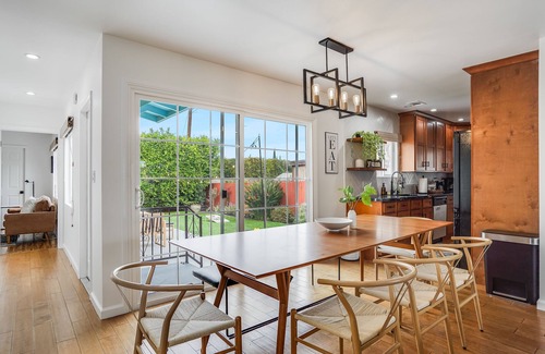 This centrally located 4 bed/3 bath home is close to Venice Beach & dazzling Hollywood. Enjoy a peaceful private backyard with cornhole & BBQ, or cool off inside with A/C, movies, and bonus room basketball. Perfect for families or couples, includes free in house W/D. Pets adored! Book your unforgettable LA getaway!