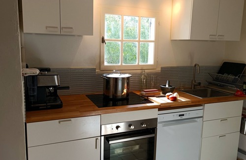 ground floor of villa 3 bedrooms 2 people. separate bathroom, powder room with separate shower; swimming pool. summer kitchen under the pool house equipped: dishwasher fridge hob barbecue oven; large covered terrace garden furniture parking 1 car in courtyard. outdoor parking at 50 m, beach at 3 min; shops nearby; town center 2 km away, many hiking trails nearby, port des Oursinieres 1 km away, sailing school 3 minutes; Valgarde golf course and horse riding center nearby.