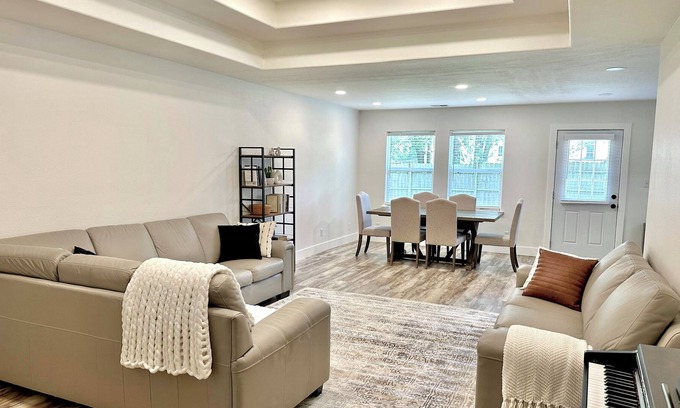Tucked away at the end of a quiet street, our home ensures a peaceful and private stay, allowing you to unwind without any distractions. Located 10 minutes away from stores.